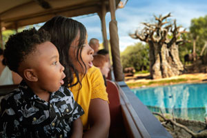 Take a a look behind-the-scenes at the park's animals on a rustic locomotive as you cross the African savanna.