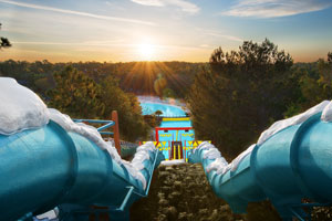 In the shadow of Summit Plummet you'll zoom down a huge 90-foot high-speed water slide.